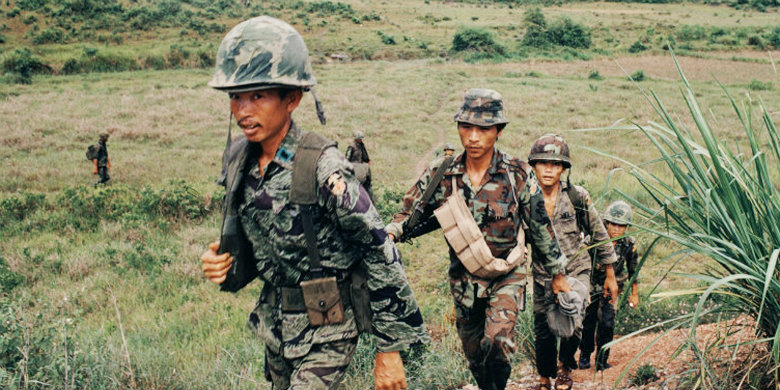 Vi dammar av dem. Tran erbjuder sig att ta med min telefon ner i tunneln för att få en bild på barnen medan de hukar sig där, så de går ett varv till. Tran är orolig över huruvida bilden blev med blixt eller utan, han visste inte exakt hur man administrerar en Iphone6. Jag säger att det är lugnt. Vi kan gå vidare nu. Gå vidare, i det som är konstruerat som en sorts äventyrspark med krig, gerilla, död och jävelskap som tema. Fast i ett aldrig sluta-skina-solsken som silar ner genom trädgrenarna. Allt ser ut som Vietnam-krigsfilmerna jag såg med min barndomsbästis Strumpan i hans familjs oxblodsfärgade Chesterfield-soffor.