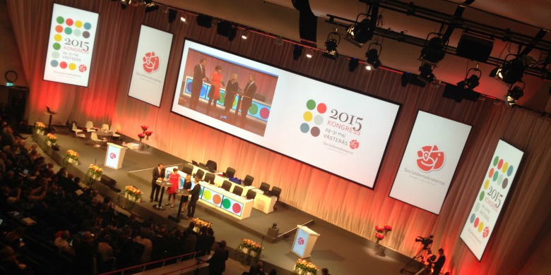 Sedan ska det stelaste scenframträdandet i mannaminne följa. Det så kallade gästtalet som de två språkrören ska hålla visar sig vara ett mycket stageat samtal med Stefan Löfven och Magdalena Andersson.
