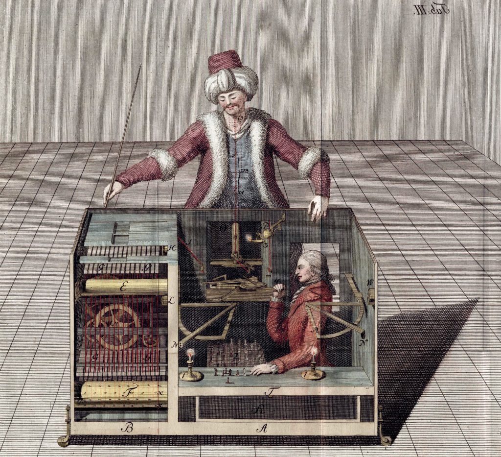 År 1770 presenterade uppfinnaren Wolfgang von Kempelen en märklig maskin för drottning Maria Theresia av Österrike. Bakom ett skåp med ett schackbräde på ovansidan reste sig en docka i naturlig storlek föreställande en turkisk herreman. Dockan kunde flytta pjäserna på brädet. Den spelade schack så skickligt att det tog tretton år innan den förlorade ett parti. Både Napoleon och Benjamin Franklin försökte besegra maskinen.