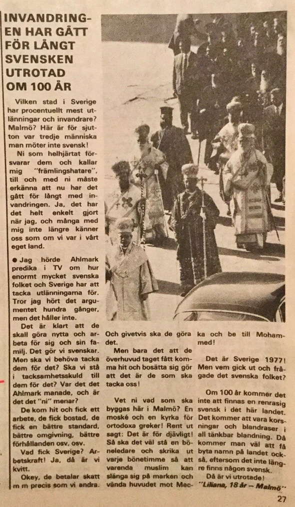 Svenska folket vill inte se utlänningar överallt de går. Utlänningar som tar svenskarnas jobb och lägger beslag på deras döttrar.