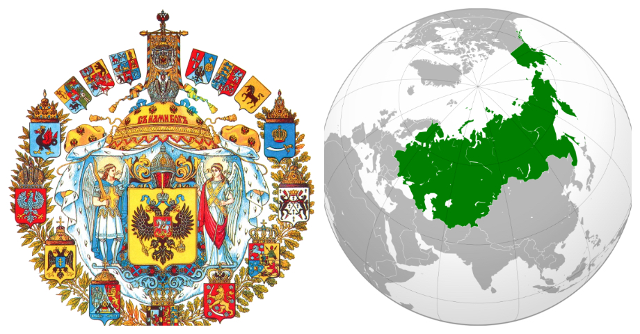 Bildcollage: Rysslands territorium år 1865. Konstverk av Robert Malanchiev (1936–2006).
