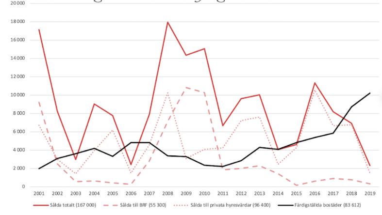 Det är dock inte första gången som beståndet ökar de senaste 20 åren. Vid tre tillfällen innan, 2003, 2006 och 2014, har antalet färdigställda lägenheter överskridit antalet som sålts eller ombildats, men aldrig har ökningen varit så markant som nu. Enligt Martin Granders bearbetning av Boverkets siffror började nyproduktionen i allmännyttan sticka iväg 2017 och han tror att det man ser 2018 och 2019 är resultatet av beslut och handlingar som fattades ett par år innan.
