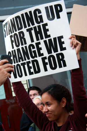 I backspegeln kan det fackliga och folkliga upproret i Wisconsin i januari i år ses som en indikation på att vinden ändå höll på att vända. Under hela våren spreds protesterna genom närliggande delstater, ut mot kusterna. Samtidigt skapades US Uncut, ett nätverk av aktivister som med inspiration från Storbritannien riktade ljuset mot storföretagens och de rikas fäbless för skatteparadis och skattesmitning. Och så nu detta. Är det här vägen man letat efter? Är ockupationsrörelsen det ”Vi” man har väntat på?