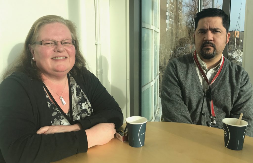 På ISS huvudkontor i Marievik i Stockholm, angränsande ett nybyggt bostadsområde med två skyhöga hus, sitter Alex Santibañez och Christina Petranyi med varsin pappmugg med kaffe. De är klubbordförande respektive riksklubbsordförande för Fastighetsanställdas förbund på ISS. Bägge har en gedigen erfarenhet; först som städare, och nu som mångårigt fackligt aktiva.