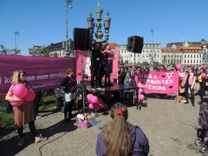 Ett stenkast längre ner på Avenyn talade talade Tobias Baudins företrädare Annelie Nordström (FI). Under fjolåret lämnade hon såväl socialdemokratin som ordförandeposten i Kommunal. I sin nya roll som Feministiskt initiativs arbetsmarknadstalesperson, talade hon om vikten av att skrota det nuvarande pensionssystemet. Samtidigt passade hon på att dela ut en känga till sina tidigare partikamrater.