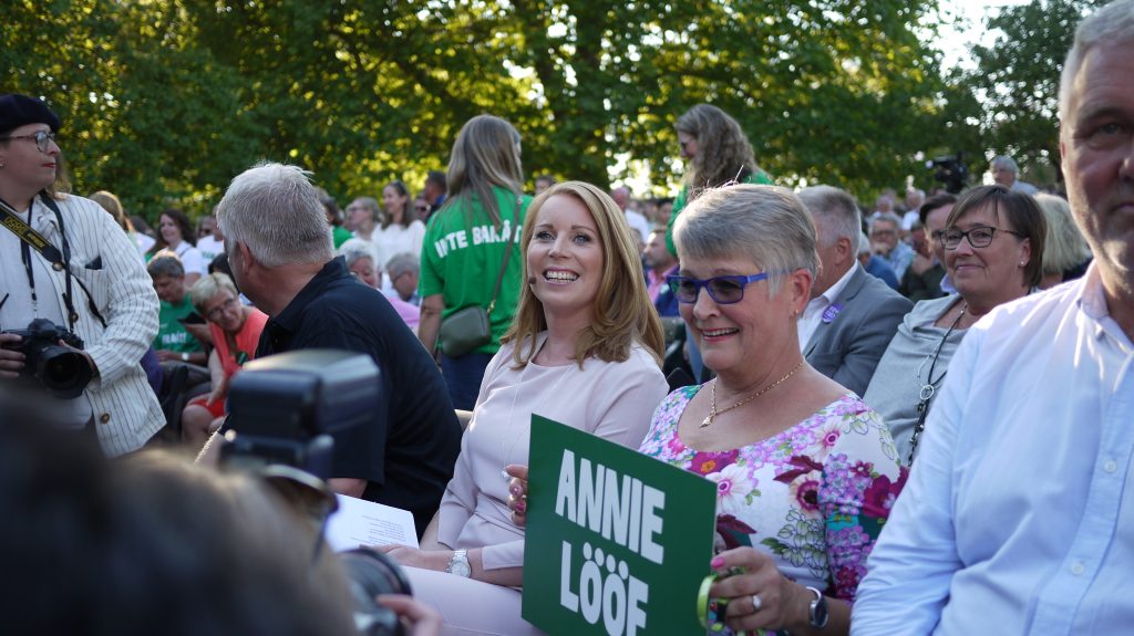 Annie Lööf hinner också med att hylla småföretagarna som hindrar Sverige från att »gå bakåt«, och därefter slänger hon in ett block om miljöpolitik som ett tag låter som Miljöpartiets Isabella Lövin: torka, hetaste maj månad som uppmätts, skogsbränder. Men det kokar ned till vikten av att rädda Östersjön – en fråga som Centerpartiet gjorde ett utspel om i början av veckan.