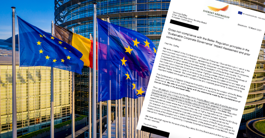 ”Principerna om bättre lagstiftning är alltför viktiga för att tillåta politiskt motiverade förslag som endast är ytligt grundade på tvivelaktiga studier och samråd som inte uppfyller kraven för opartisk undersökning”, skriver Svenskt Näringsliv i brevet.