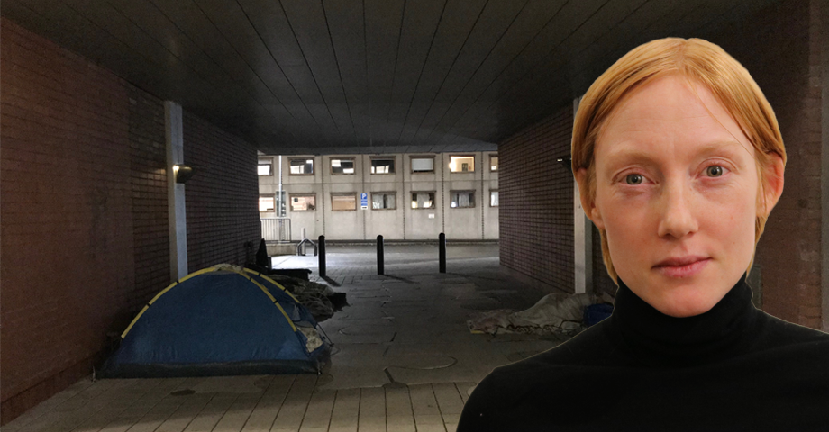 »Men nu är det vinter och det är mitt i natten. Det har inte med EU-migranterna som sover i tunneln här bredvid?« säger jag i bästa Janne Josefsson-anda.