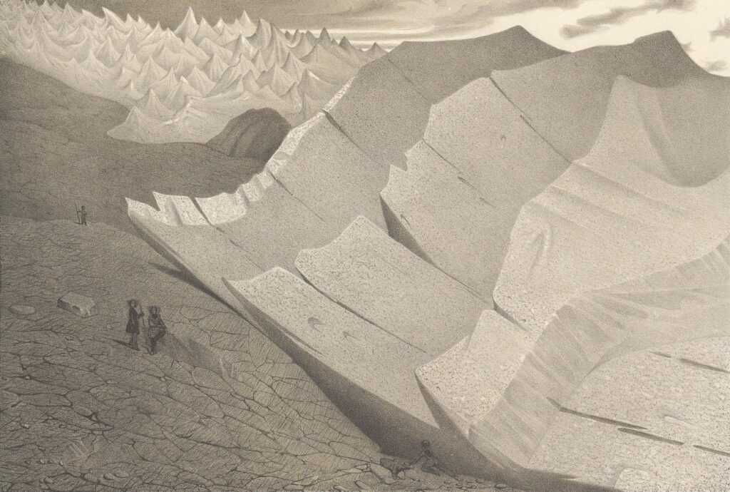 Kyrkans makt över människornas tankar var alltså fortfarande stor och det hände först en bit in på 1800-talet att vetenskapen verkligen började komma gåtans lösning på spåret: tänk om det inte var vattnet som minskade – tänk om det i själva verket var landet som höjde sig! Den som först snuddade vid denna radikala och till synes långsökta idé var Louis Agassiz, en mångsidig schweizisk-amerikansk zoolog och geolog som i ”Études sur les glaciers” år 1840 lade fram tanken att större delen av norra halvklotet en gång i tiden hade varit täckt av is.