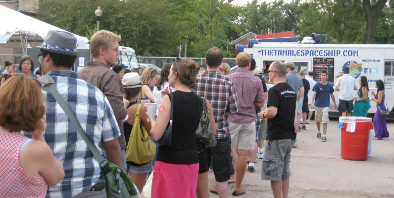 Därför hamnade jag en bit ned på Chicago Avenue, precis i skarven mellan de gamla polska och ukrainska kvarteren. På ena sidan baren ”The Chipp Inn” var kyrkorna katolska, på den andra ortodoxa. Efter en rejäl pratstund, som pendlade från president Obama till tankar om att bli pappa (vilket jag också ska bli i höst), var det dags för David att rusa hem igen. Han föreslog att jag skulle fortsätta ett par kvarter nedåt längs Chicago Avenue på egen hand, där det skulle vara en ”Food Truck Festival”.