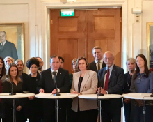 Regeringsförklaring Partiledarna utanför regeringen mötte pressen efter att den nya regeringen...