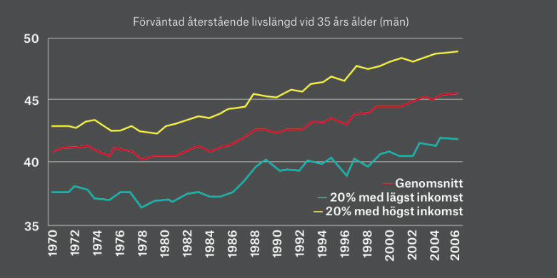 Skillnaden i medellivslängd mellan rika och fattiga i Sverige växer....