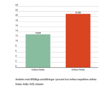 Otrygga anställningar Var femte utrikesfödd arbetar otryggt och bland de födda utanför...