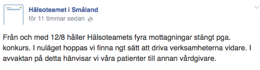 På Facebook uppdaterar vårdcentralen Hälsoteamet att man har gått i...