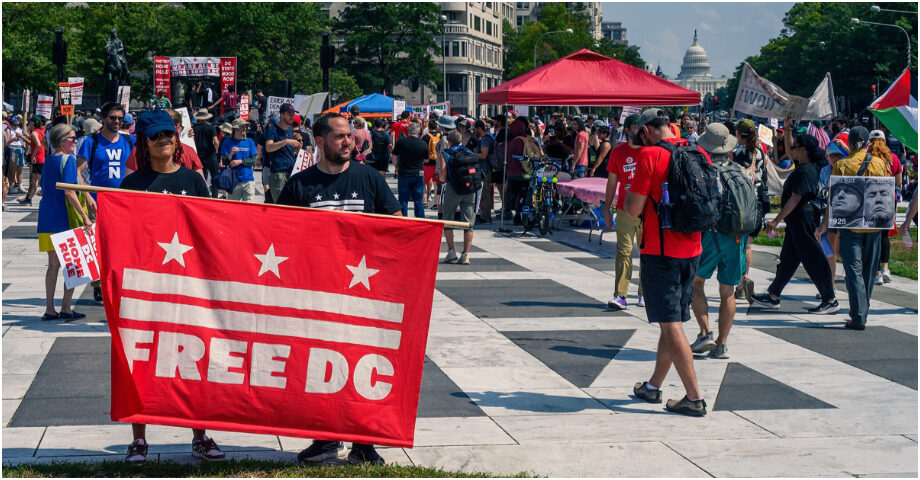 Ingen kan undgå de röda plakaten med stridsropet ”Free DC” – Befria DC – som arga invånare placerat ut i gathörn, i fönster och på väggar. De vänder sig mot den tillfällige grannen Donald Trumps beskrivning av deras stad: ”Våldsamma gäng och blodtörstiga brottslingar, kringflackande vilda ungdomsmobbar, drogade galningar och hemlösa har tagit över.”