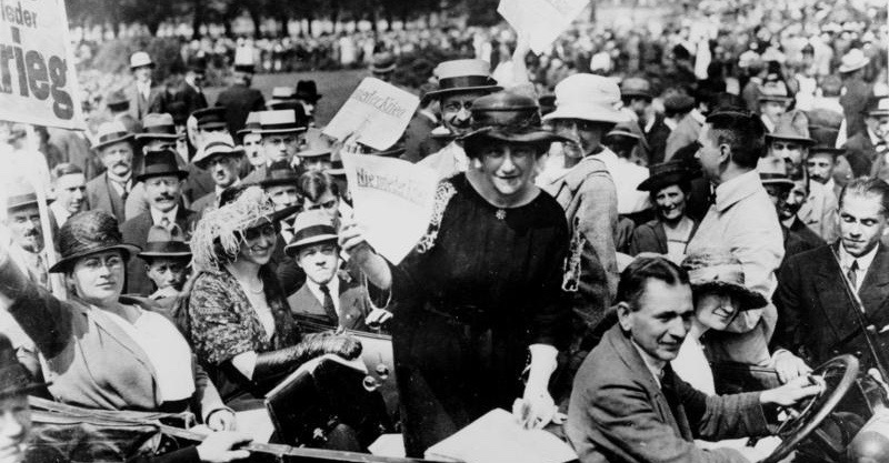 Pacifistdemonstration i Berlin 1921. Kvinnan i svart är Mileva Einstein-Maric, då gift med Albert Einstein. Bild: Bundesarchiv