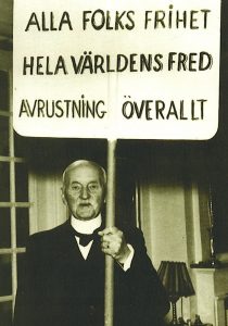 Den svenske vänsterpolitikern Carl Lindhagen med det plakat han alltid bar vid första maj.