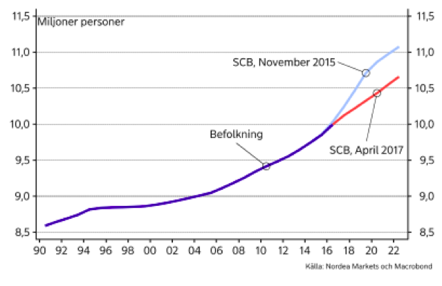Boverkets bedömning av behov av bostadsbyggande baseras också på befolkningsprognoser som ofta revideras. SCB har i den senaste prognosen reviderat ned befolkningen med 400 000 personer för år 2020, jämfört med den prognos som gjordes i november 2015. Nedrevideringen innebär att prognosen om behov av bostadsbyggande ständigt måste revideras.