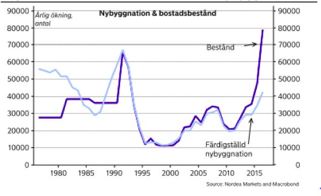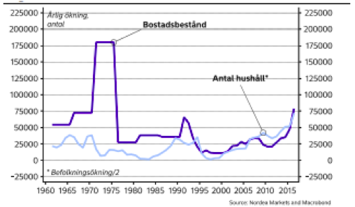 Ser vi till utvecklingen av antalet bostäder och jämför med befolkningstillväxten finns det dock inte mycket som pekar på att det råder brist på bostäder.