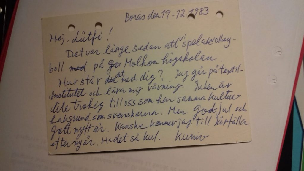 Efter att Kunio lämnat Sverige fick vi julkort och nyårshälsningar i vackra kuvert med fantastiska frimärken med japanska mönster. I decennier uppdaterade Kunio min far om viktiga händelser i sitt liv och skickade brevledes informationer om kurder på japanska.