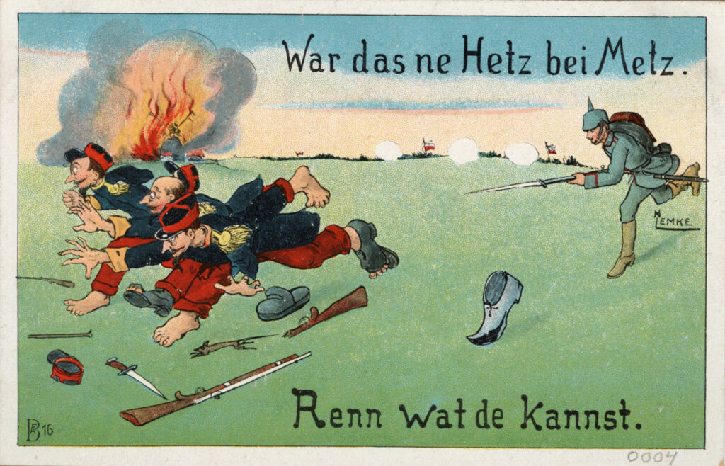 Föga förvånande kom det brittiska imperiets skald – och författaren till Djungelboken – Rudyard Kipling (Nobelpristagare i litteratur 1907) att i The Morning Post i juni 1915 skilja mellan ”mänskliga varelser och tyskar”. Kipling hade redan under 1890-talet i sina verk hyllat de västerländska koloniala erövringarna och glorifierat soldatandan. En positiv syn på krig i den europeiska litteraturen var därmed inte något som enbart hörde till slutet av den långa fredsperioden.