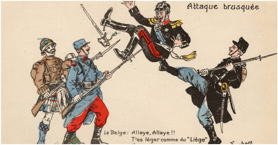 Parallellt med de geopolitiska motsättningarna hårdnade retoriken och propagandan. När de slutliga militärallianserna hade etablerats lades följande officiella huvudnarrativ till rätta: Tyskland såg sig inringat av fiender och hävdade att Ryssland förberedde ett lömskt anfall från öster, medan revanschlystna Frankrike – sedan det förnedrande nederlaget 1871 – i sin tur delade Storbritanniens och Rysslands bild av Tyskland som en aggressiv militärmakt med drömmar om världsherravälde. Samtliga länder tvingades alltså in i ett försvarskrig. Detta stärkte den inhemska opinionen. Ett samlat nationellt hat riktades mot angriparen.