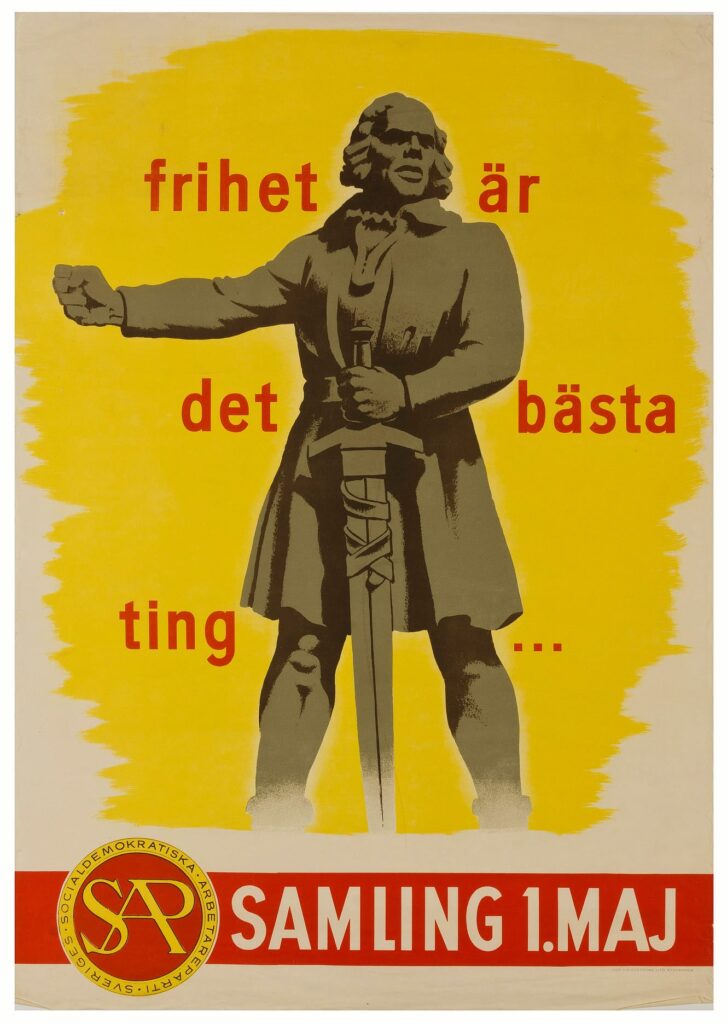 Det passade också socialdemokratin att trycka Engelbrekt till sitt bröst när folkhemmet skulle byggas, klasskamp omvandlas till folkgemenskap och den nationella självständigheten försvaras i en tid då diktaturerna var på frammarsch. Till 1 maj krigsåret 1941 producerade SAP till exempel en affisch med texten ”Frihet är det bästa ting” och illustrerad av Carl Eldhs storsvenska Engelbrektsstaty från Arboga. Här anar man också tidens smak för starka handlingskraftiga män.