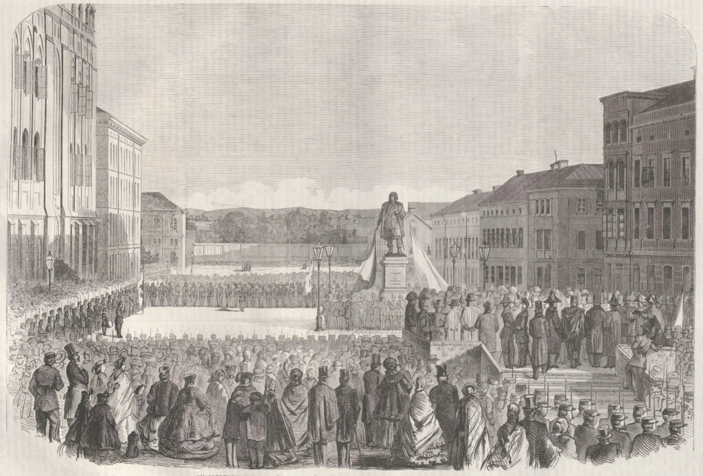 På den bastanta stensockeln hyllades Engelbrekt som ”den trofaste försvararen av Sveriges frihet”. Det passade bra i tidens anda av svulstig fosterlandskärlek att beskriva Engelbrekt som en folkets man, ledare för en svensknationell rörelse mot utländskt – läs danskt – fogdeförtryck. Georg Starbäcks storsäljande roman ”Engelbrekt Engelbrektsson” från 1868 befäste bilden av Engelbrekt som folkledare och enande frihetsgestalt. Folket griper nu för första gången in i historieskrivningen. Starbäck målade fram en tablå där Engelbrekt förmedlar den meniga allmogens ”önskningar och vilja”, och där bönderna genom honom blir en både politisk och militär kraft att räkna med i den nationella frigörelsen från Kalmarunionen.