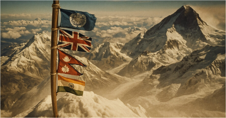 Det är nya tider också politiskt. The British Raj har nyss upplösts och efterlämnat två självständiga stater: Indien och Pakistan, som nästan genast råkar i krig över det omtvistade Kashmir. Det tidigare så slutna kungariket Nepal har börjat öppna sig mot omvärlden och släpper in expeditioner till Everest. Kejsarnas gamla Kina har å andra sidan blivit en kommunistisk folkrepublik som nu också har annekterat det feodala Tibet och håller gränsen stängd för västerlänningar. Världsordningen tycks ha kastats om och paret Hillary-Tenzing, en vit och en brun förenade av ett kort rep på toppen av Everest, skulle bättre än de flesta kunna personifiera denna efterkrigstidens stora frigörelse- och avkoloniseringvåg.