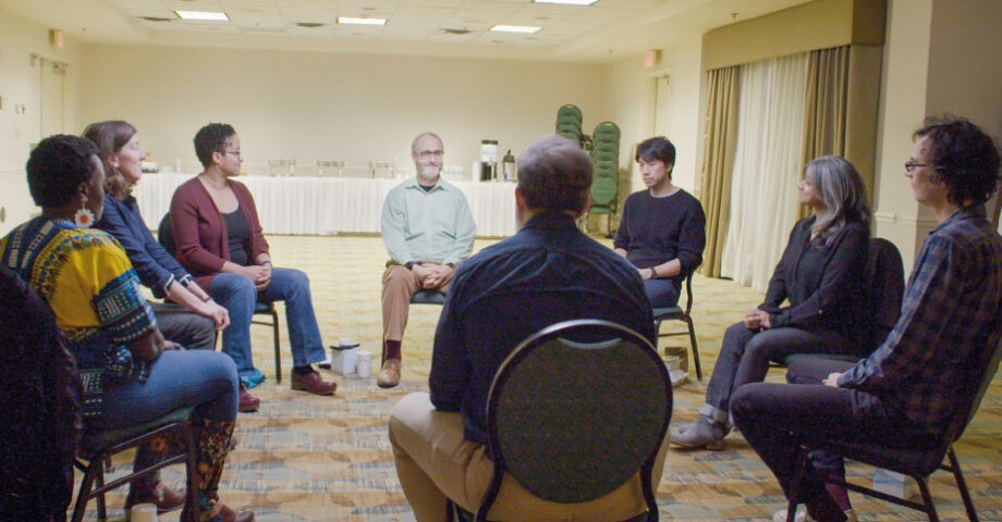 Till en början är de synnerligen skeptiska till Richard Becks öppna frågor och piniga påhitt, som att de ska prata med en tom stol där de ska föreställa sig att ett barn från framtiden sitter (”det här är en löjlig övning”, säger den japanske ekologen Mizuki, och jag är benägen att hålla med). Men så börjar det sakta öppna sig: en berättar om sin ilska, en annan om skammen när de egna barnen frågar varför polarisarna smälter. Om att inte våga berätta vad man jobbar med, eftersom det bygger en barriär mellan en själv och människorna man möter.