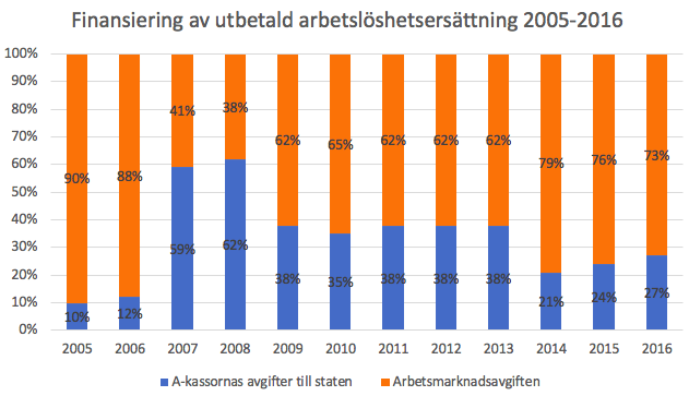 I avhandlingen påminns vi om hur drastiska förändringar och försämringar som den politiska borgerliga alliansen genomförde 2006–2014 och vilka svåra konsekvenser det fick för de arbetslösa och för facken när »arbetslinjen« i ett slag sänkte ersättningsnivåerna till under OECD-snittet samtidigt som avgifterna till försäkringen mångdubblades för de grupper som hade högst arbetslöshet. Medan ett akademikerförbund kunde betala 36 kronor kunde en medlem i ett förbund med hög arbetslöshet betala 359 kronor. Chocken ledde till massflykt ur fackförbund och a-kassor, främst bland LO-förbunden och deras a-kassor, och skadan är ännu inte reparerad. Nivån på de som inte är medlemmar alls i en a-kassa är oförändrat cirka 30 procent. Och en osäker arbetsmarknad gör att ännu fler står utanför.