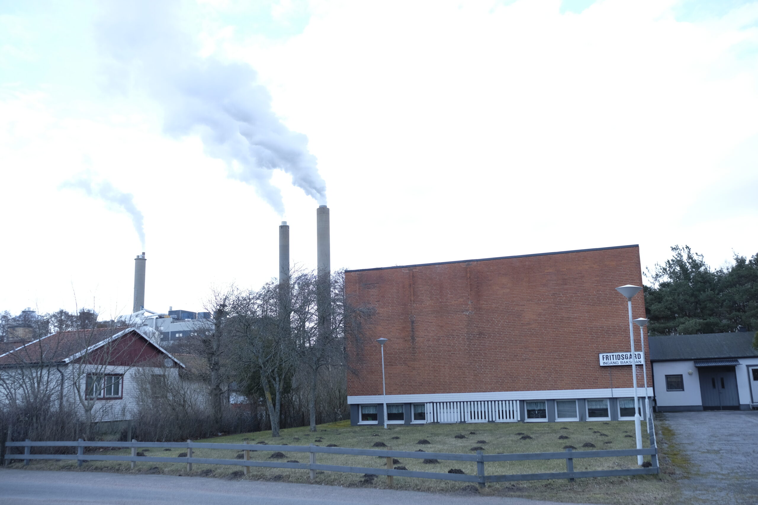 Vit bolmande rök. Svagt stickande lukt när vinden blåser från bruket. Stora Enso tillverkar pappersmassa och obestruket papper. Småvillor och flerfamiljshus. En fyrkantig tegelbyggnad med skylten ”Fritidsgård – Ingång baksidan”.