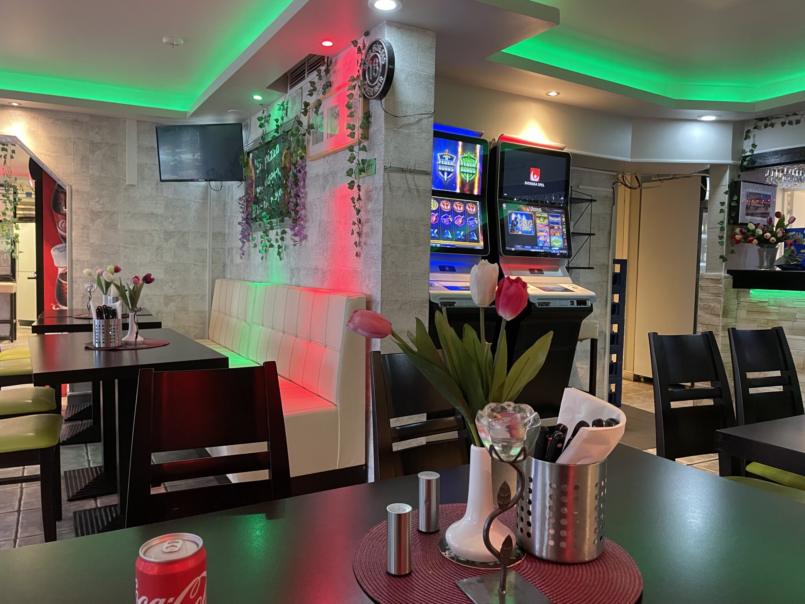 Jag gör ett stopp vid pizzerian vid torget. Där möter jag Senait. Hon och jag är de enda gästerna.