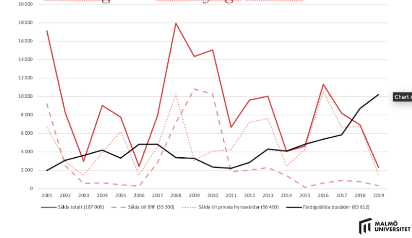 Det är dock inte första gången som beståndet ökar de senaste 20 åren. Vid tre tillfällen innan, 2003, 2006 och 2014, har antalet färdigställda lägenheter överskridit antalet som sålts eller ombildats, men aldrig har ökningen varit så markant som nu. Enligt Martin Granders bearbetning av Boverkets siffror började nyproduktionen i allmännyttan sticka iväg 2017 och han tror att det man ser 2018 och 2019 är resultatet av beslut och handlingar som fattades ett par år innan.