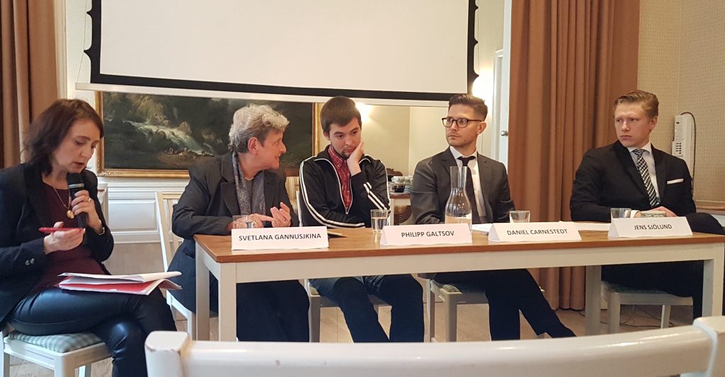 En av deltagarna var Svetlana Gannusjkina, som är ordförande för Civic Assistance Committee, en rysk organisation som arbetar emot diskriminering och stöder flyktingar, migrantarbetare och minoriteter i och utanför Ryssland. Hon tog även emot Right Livelihood-priset 2016.
