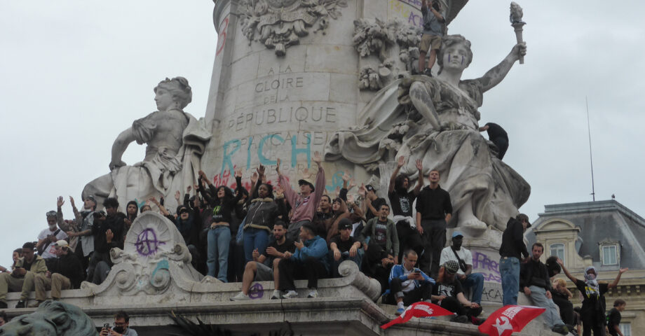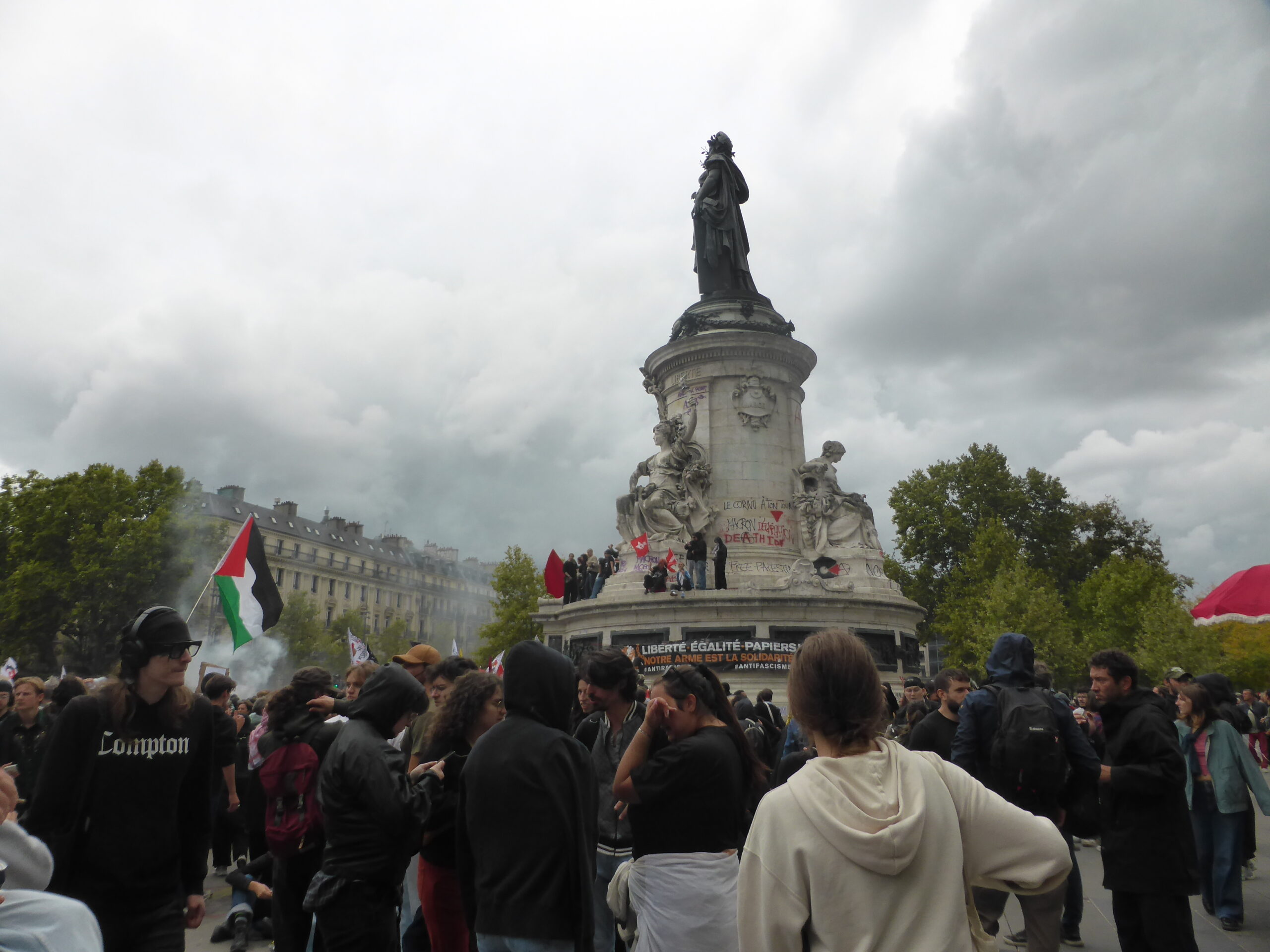 – Regeringen vi har just nu, den är skräp. De vill inrätta nya lagar vi inte håller med om, en ny budget vi inte står bakom, och nu har presidenten utsett en ny premiärminister. Det är ännu en premiärminister vi inte valt, som är rasist och homofob, säger Léonie, som deltar i demonstrationen vid Place de la Republique i centrala Paris.