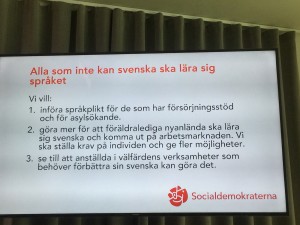 – För att ha möjlighet att leva fullt ut i Sverige måste man kunna prata svenska. Om man behöver svenska ja då ska man också lära sig svenska. För det behövs det bra stöd men också tydlig krav, säger Magdalena Andersson.