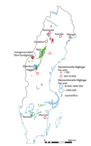 Uranfyndigheterna i Sverige står tillsammans för över en fjärdedel av de kända fyndigheterna i Europa. Att det skulle öppnas rena urangruvor är dock inte säkert.