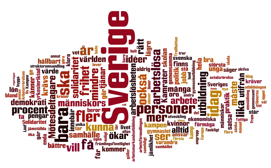 Fotnot: Dagens Arena hade även planerat att göra ett ordmoln av Jonas Sjöstedts tal. Sjöstedt skriver dock inte ner sina tal utan talar fritt utifrån stödord. Därmed hade vi varit tvungna att transkribera hela talet vilket vi tyvärr inte hade tid med. Men du kan se talet i efterhand här.