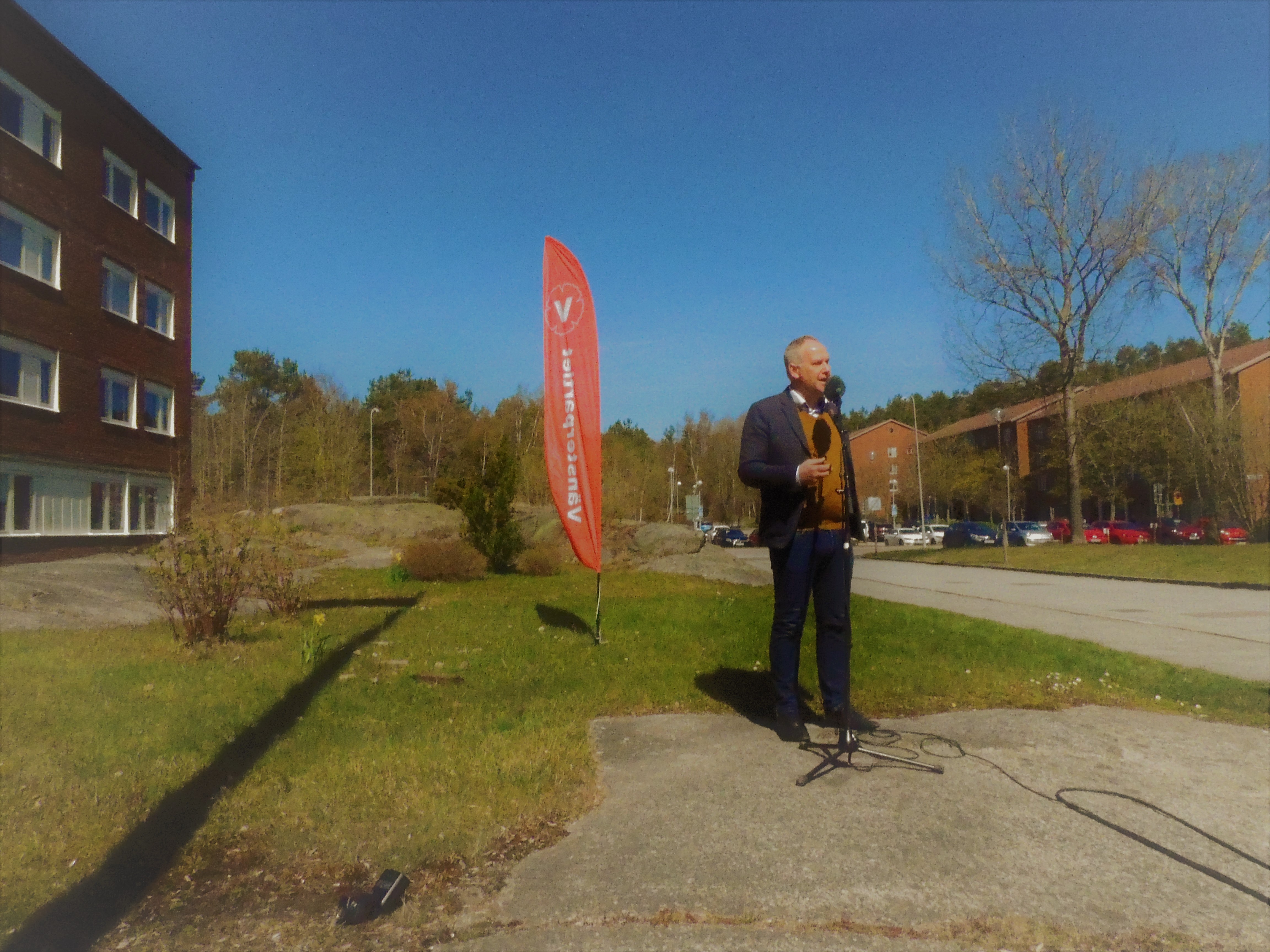 I solvärmen på Rådhustorget i *Falkenberg lyfte talarna såväl ohälsa och press på unga i skolan som hungerkravaller för 100 år sedan och antidemokratiska hot idag.