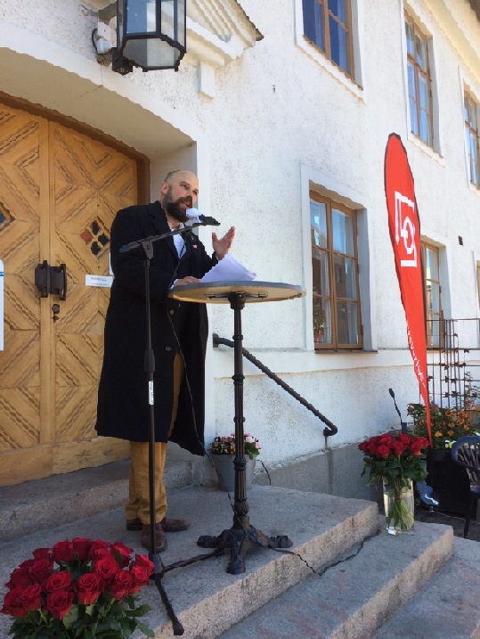Men talen innehöll också hoppfulla budskap och avrundades med kraftfull agitation. Marcelle Farjallah (S), ordförande i Falkenberg, inledde med en tyst minut för att hedra offren på Drottninggatan. Patrik T Nilsson LO:s ordförande i Falkenberg påminde om vikten av organisering: