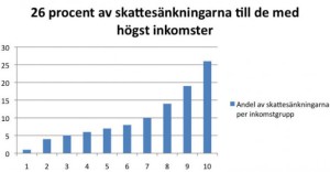 De med högst inkomster skulle då få mer än en fjärdedel av de planerade skattesänkningarna. De med lägst inkomster fick nöja sig med en hundradel. Även mellan könen var fördelningen snedvriden. 59 procent av inkomstökningarna gick till männen, medan kvinnor fick 41 procent.