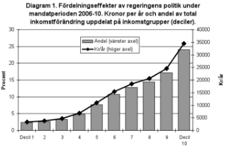 Den sammanlagda effekten av den borgerliga alliansregeringens första mandatperiod 2006 och 2010 såg ut så här: