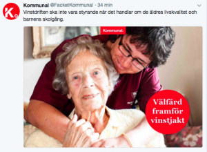 Under parollen »välfärd framför vinster« är även Kommunal positiva.