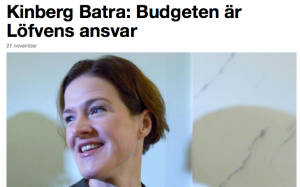 “Regeringen har uppmanat alliansen att lägga ner sina röster om SD väljer att frångå praxis och rösta för alliansens budget i slutomröstningen. Men Kinberg Batra tycker inte att det är oppositionens ansvar.