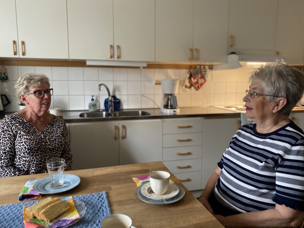 Gunilla Wahlström, 81, och Christina Skoog, 69, bor hos en större privat värd i södra Stockholm. Dagens Arena träffar dem hemma i Gunilla Wahlströms trerummare. Kaffebryggaren puttrar och doften av sockerkaka och äppelbakelse, som står prydligt uppdukat på köksbordet, sprider sig ut i hallen.