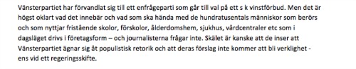 Ett par lärare inom Fria Läroverken har kontaktat Dagens Arena och berättar om det obehag som brevet från deras chef har väckt. De upplever att de blir “varnade” för Vänsterpartiet, och att Hultin attackerar media för att de inte ifrågasätter välfärdsdebatten mer.