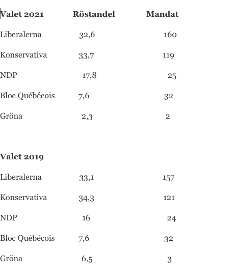 marsavtalet Sverige fick i januari 2019 en ”Januariöverenskommelse” mellan S-MP-regeringen och C och L. Kanada har fått en ”Marsöverenskommelse” mellan regerande Liberalerna och socialdemokratiska NDP. Den säkrar liberala regeringens maktinnehav fram till 2025.