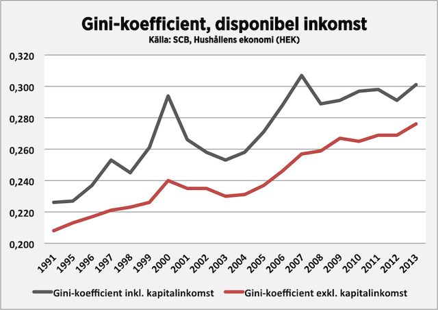 För 25 år sedan låg Sverige i botten av OECD:s ojämlikhetsliga, men sedan dess har vi passerat nio länder på gini-listan, däribland Österrike och Belgien.