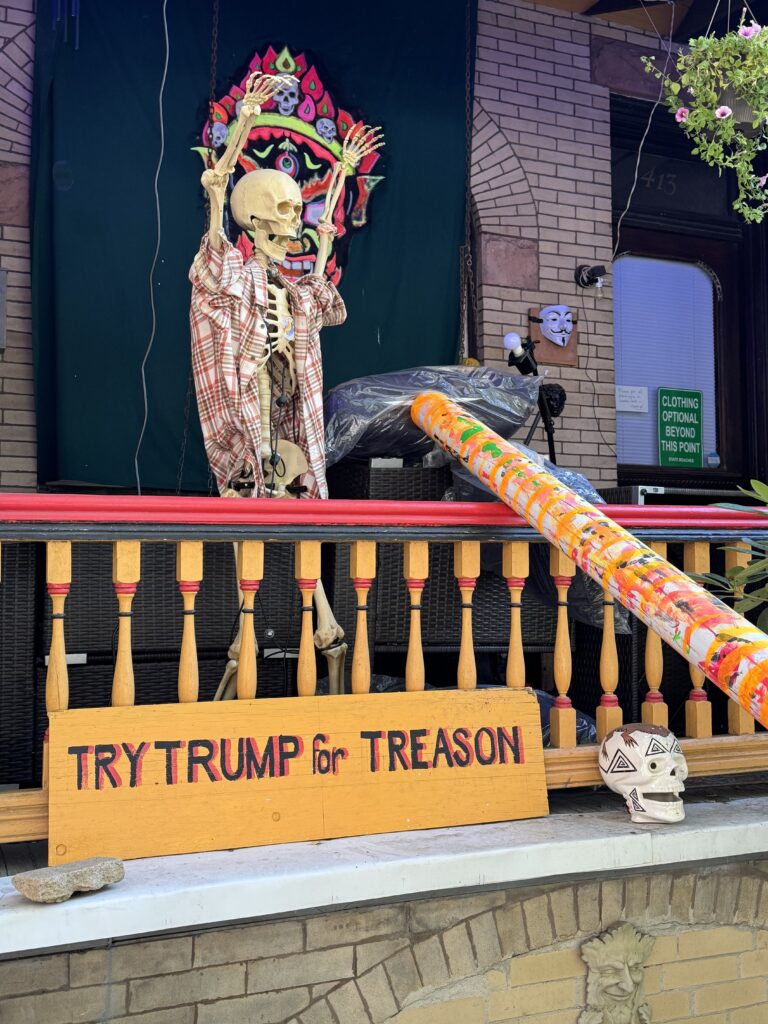 Hon pekar med handen bort längs raden av pittoreska town houses och lagom bohemiska verandor. Det känns lite som Philadelphias motsvarighet till Majorna i Göteborg. Det är några dagar efter Halloween och pumpaansikten och skelett samsas med politiska budskap.